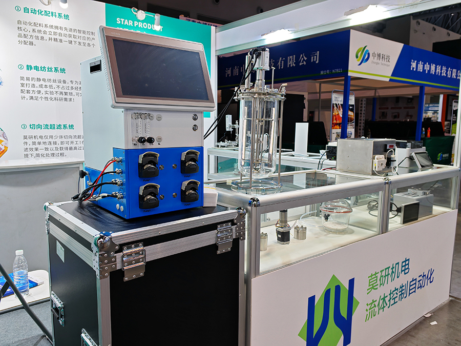 展會(huì)現(xiàn)場(chǎng),莫研機(jī)電的展位號(hào)為 N7A22,精心陳列了滴定儀、生物發(fā)生器、蠕動(dòng)泵、注射泵等多款先進(jìn)儀器,以及靜電紡絲系統(tǒng)、切向流系統(tǒng)、稱(chēng)重分裝系統(tǒng)等系統(tǒng)應(yīng)用。其中,自動(dòng)化配料系統(tǒng)與生物反應(yīng)器系統(tǒng)堪稱(chēng)明星展品。自動(dòng)化配料系統(tǒng)以其先進(jìn)智能控制核心驚艷全場(chǎng),能迅速獲取產(chǎn)品配方信息,并一鍵下發(fā)至各分配器。FKE - A5 全自動(dòng)生物反應(yīng)器作為生物反應(yīng)器系統(tǒng)代表,高精度 DO 控制與全自動(dòng)過(guò)程控制能力,為高校實(shí)驗(yàn)及科研工作筑牢堅(jiān)實(shí)技術(shù)支撐,其簡(jiǎn)潔界面與自由擴(kuò)展性能,深度契合科研個(gè)性化需求,有力推動(dòng)實(shí)驗(yàn)進(jìn)程。